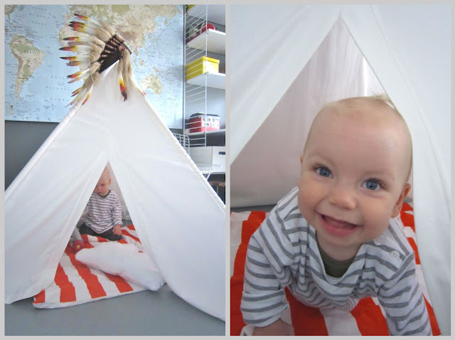 hieno teltta. mä tein vastaavan (kylläkin nuhjuisemman näköisen) muksuille joululahjaksi, mutta se ei pysy pystyssä, kun kepit luistaa kujissaan. kohta puoli vuotta on pitänyt keksiä joku ratkaisu ongelmaan, mutta... ehkä ensi jouluksi, öh.